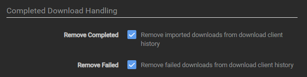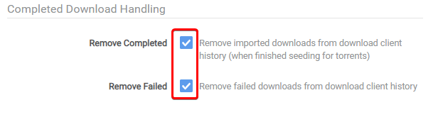 The following settings are recommended for Sonarr/Radarr, or else it could happen that Sonarr/Radarr will miss downloads that are still in the queue/history. Being that Sonarr/Radarr only looks at the last xx amount in the queue/history.